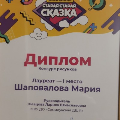 Юных победителей фестиваля «Старая, старая сказка – 2021» наградили в Воронеже. Поздравляем нашего лауреата! Ученица Семилукской детской школы искусств в конкурсе рисунков Мария Шаповалова завоевала 1 место в старшей возрастной категории и получила сертификат на сумму 20000 рублей. Для конкурса была выполнена иллюстрация к сказке "Волшебная дудочка".